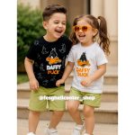 - ست تیشرت نخی و شلوارک کتان کاغذی